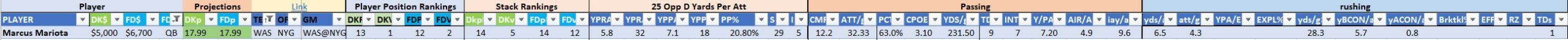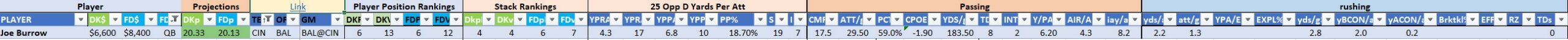 - optional – QB with at least one RB/WR/TE from the Opposing Team (we typically prefer the pass-catchers but high-volume running backs can be effective here)