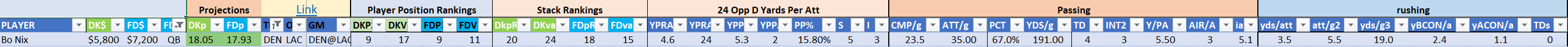 oppDEF: 4.2 ypa rush / 6.5 ypa pass / 23.0 ppg / 10.53% sack / 0.0% int