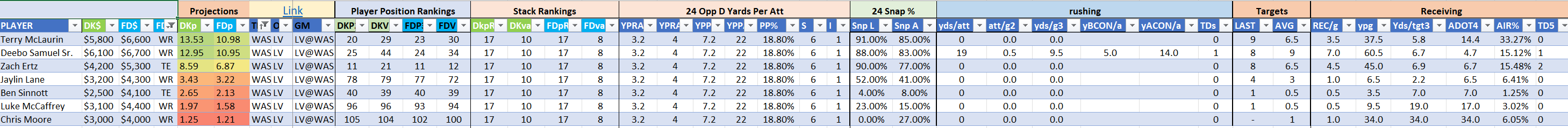 The Commanders are Stack 17 by points but Stack 12 by value on DraftKings and Stack 17/11 on the FanDuel slate.