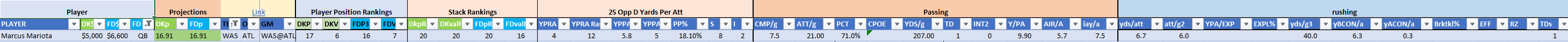 Jayden Daniels is officially out for Week 4, making this Marcus Mariota’s team for at least one more week in the sun. Mariota had an outstanding fill-in performance in Week 3, as mentioned in this space last week he has all of the tools necessary to run this offense effectively for the moment. Mariota proved that point by putting up 40 rushing yards and a touchdown on his six rush attempts while throwing for 207 yards and a touchdown on 15-21 passing. The quarterback did not set the world on fire for production with his modest numbers but he was poised and ready to run the offense as a meaningful contributor in his backup role, putting him far more firmly into play than lousy regular starters like Spencer Rattler and others. Mariota is QB17 by points but QB5 by value on DraftKings, he is QB15 by points and QB7 by value on the FanDuel slate, though his stack rates as lower-end play than that given the added absence of number one receiver Terry McLaurin this week.