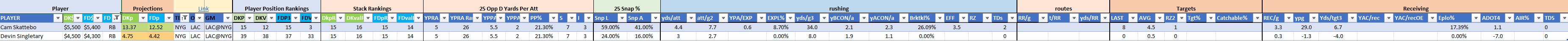 • Limit RB/WR/TE from the Same Team to one unless paired with QB from the Same Team OR the Opposing Team (this prevents multiple players from a team that is not a primary quarterback-based stack)
