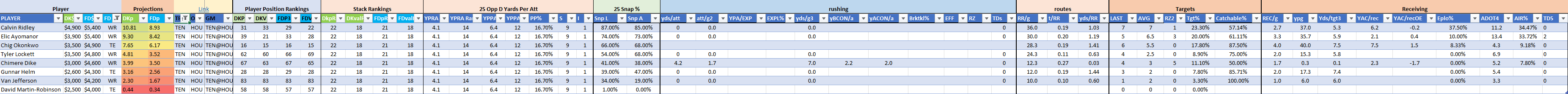 The Titans are an undesirable option at Stack 22/20 and Stack 21/19, there are a few individually playable options including Tony Pollard and the top two wide receivers but dependence on Cam Ward is not currently a great idea.