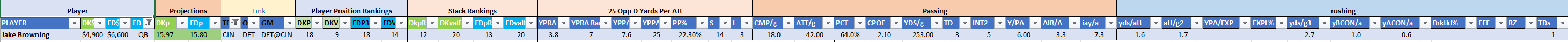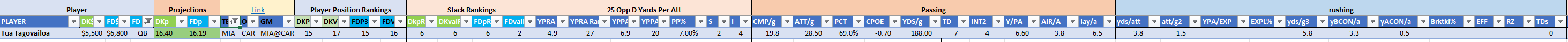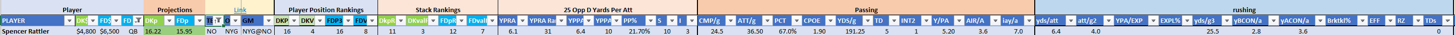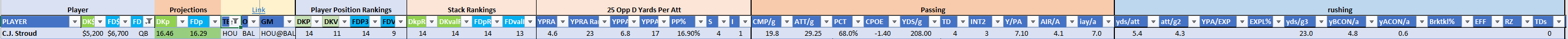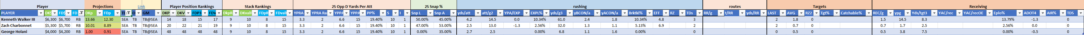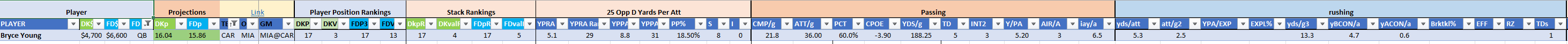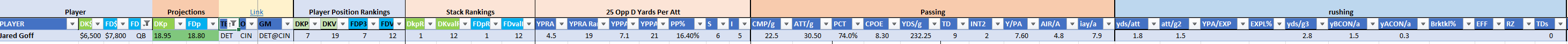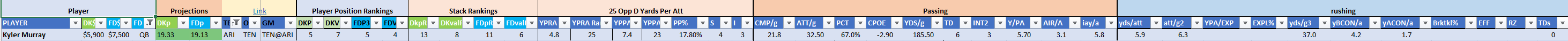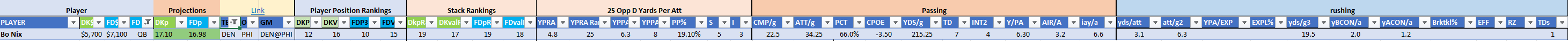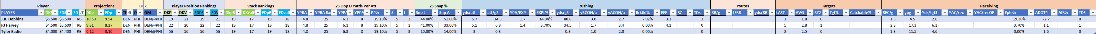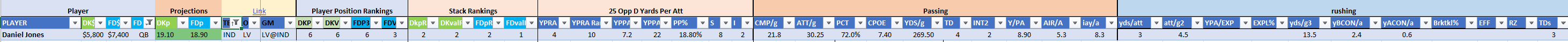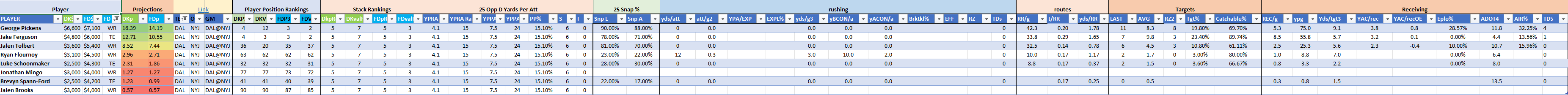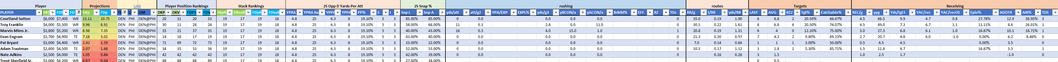 The Eagles are Stack 3 by points and Stack 7 by value on DraftKings and Stack 4/6 on the FanDuel slate against a tough Denver defense, they have plenty of scoring potential and are impossible to fully suppress but there is a lot of danger in play for limited scoring at high pricing. Philly may slip slightly in weekend projection and ranking updates but they are at worst playable on any given slate and their stars remain stars both in and out of stacks.