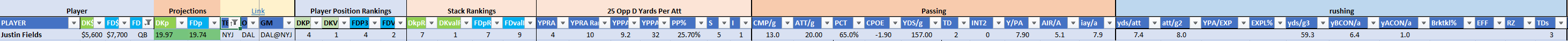 Justin Fields rates highly again in Week 5, despite delivering on such promises early in the season this is still an uncomfortable position for the quarterback to land in for DFS gamers. Fields is an unreliable passer in general, even in productive play this year he has a -1.9 CPOE and has completed just 13 of 20 pass attempts per game. Of course, the quarterback more than makes up for any lackluster passing with his productivity on the ground, Fields has three rushing touchdowns in just two full contests on the season, he threw for a touchdown and ran for two more in a terrific Jets debut in a shootout against the Steelers then followed that with an injury after just 29 weak snaps and 27 yards on 3-11 passing against the Bills before missing Week 3 entirely. Fields returned to action with a solid 226 yards on 20-27 passing with a touchdown against Miami last week, padding scoring as usual with 81 rushing yards and a touchdown on seven attempts on the ground. As long as he can produce scoring via rushing, Fields will land with elite DFS scoring ceilings, his matchup against a league-worst Dallas pass defense pushes him into the upper-tier of quarterback options on this slate. Fields is QB4 by points on both sites and QB1 by value on DraftKings, he is QB2 by value on FanDuel and leads a Jets stack that ranks as one of the better options of the week. The Cowboys have allowed an absurd 9.2 yards per pass attempt on the season while coming up with just five sacks in four games, Fields could dance his way to productivity in Week 5 and he looks far too low-owned across industry projections.