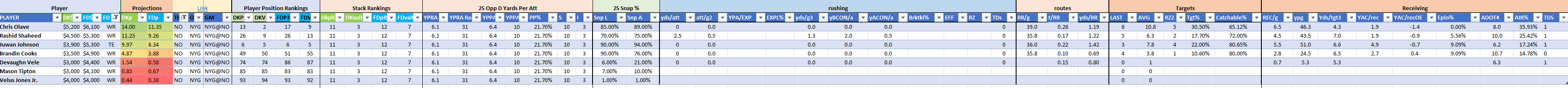 The Giants are Stack 16 by points and Stack 13 by value on DraftKings, they are Stack 16/14 on the FanDuel slate and lack true appeal on either site.