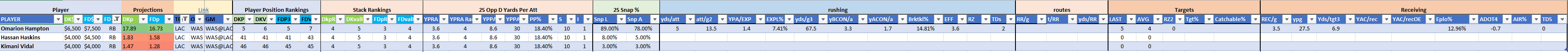 TEAM | OPP | FD$ | FDpRank | FDvalRank | DK$ | DkpRank | DKvalRank | Vegas |