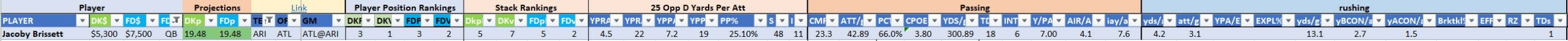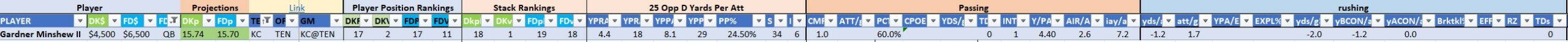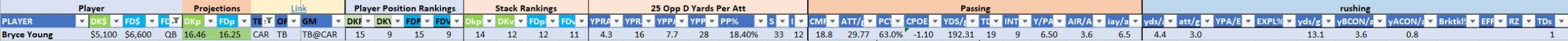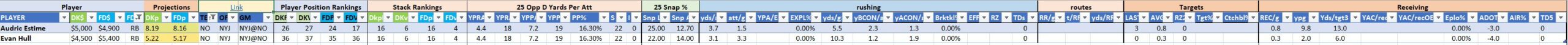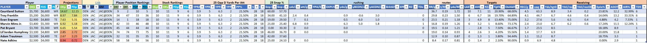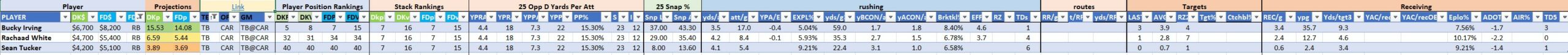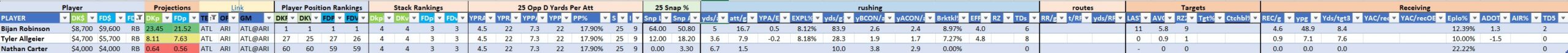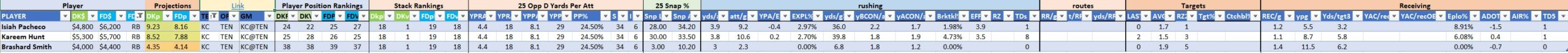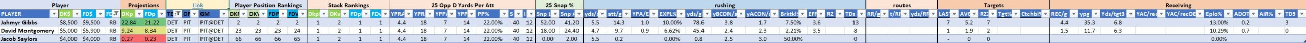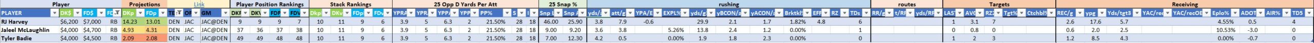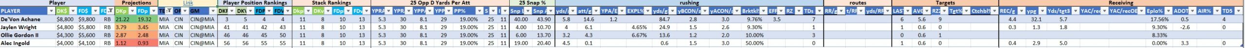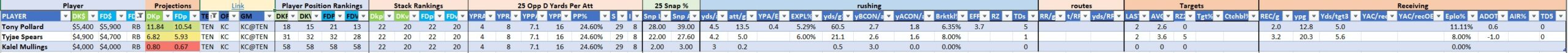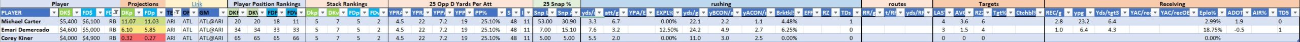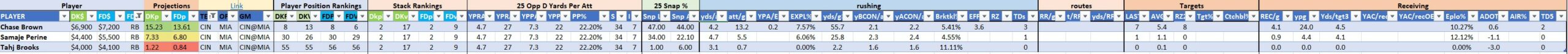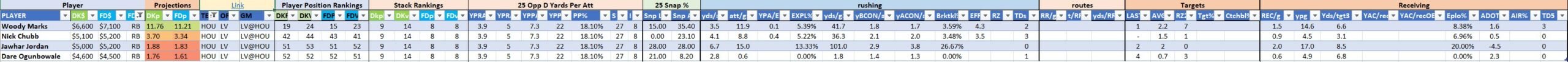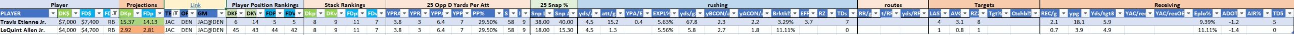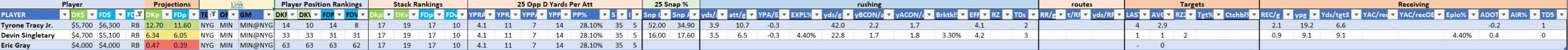 Utilizing two groups also allows us to place running backs into the “run-back” position in certain teams while not including them in the primary stack for their team. This is useful when a situation has an extremely highly projected running back that does not necessarily fit into his team’s passing game. These players are threaded throughout the following construction recommendations.