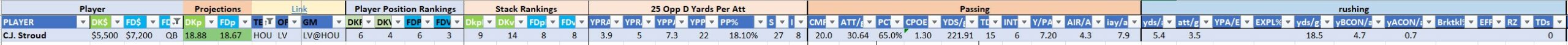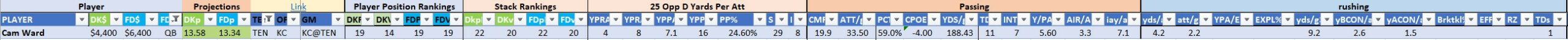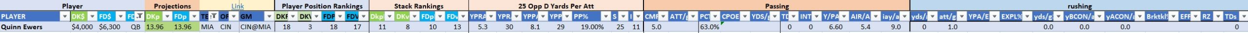 - optional – QB with at least one RB/WR/TE from the Opposing Team (we typically prefer the pass-catchers but high-volume running backs can be effective here)