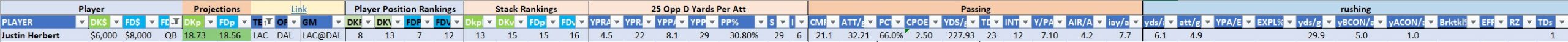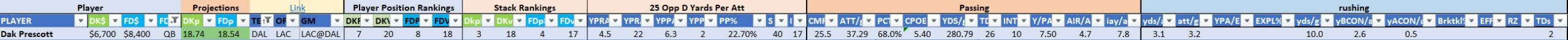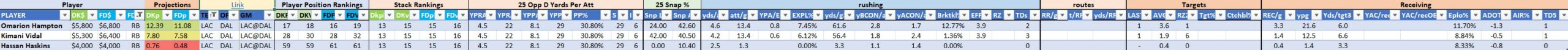 | TEAM | OPP | FD$ | FDpRank | FDvalRank | DK$ | DkpRank | DKvalRank | Vegas |