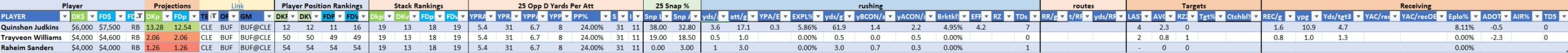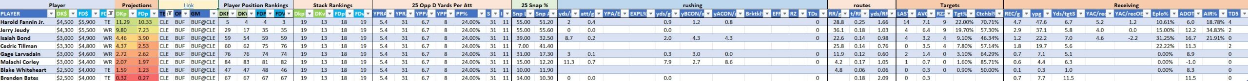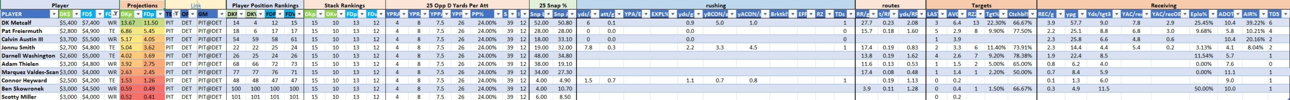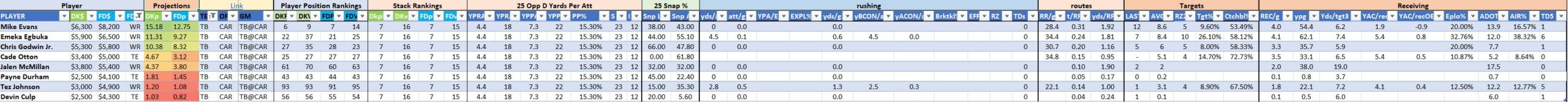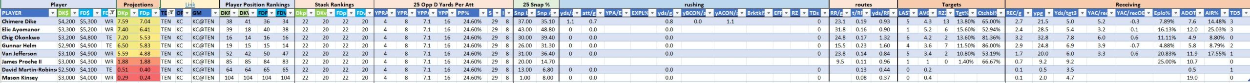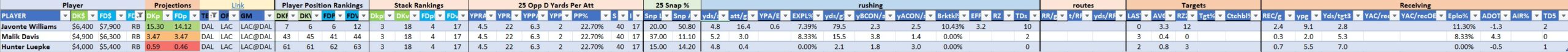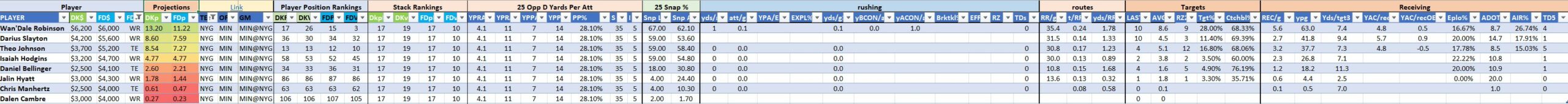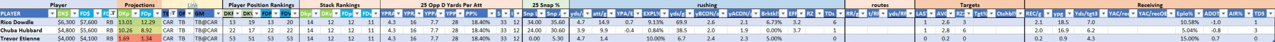 We will maintain the list of rules and limits throughout the season, with occasional tweaks. Each week sees another fresh crop of value plays as situations change and injuries create opportunities around the league. These changing roles and emergent value plays are accounted for in creating these groups from week to week. After a large pool of lineups is created utilizing these groups, it is still critical to filter them for factors including ceiling projections and leverage potential. These groups should help ensure that a highly correlated premium set of options that rotates through various combinations is utilized to create the full lineup pool.