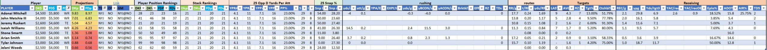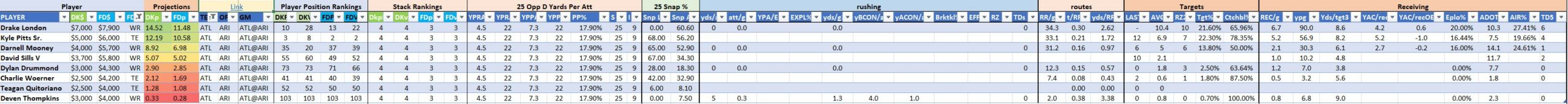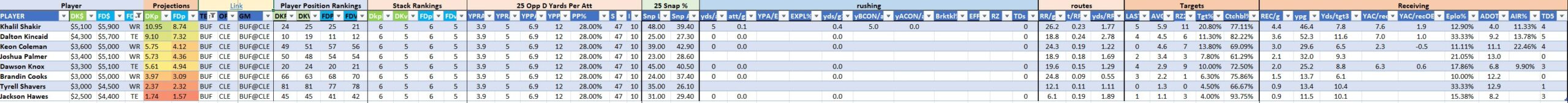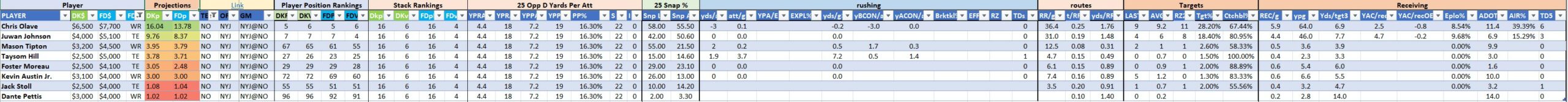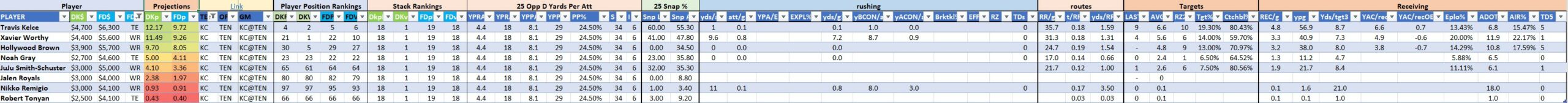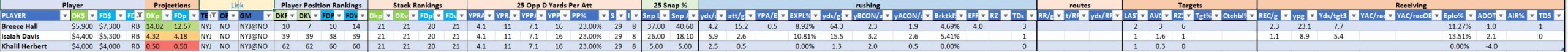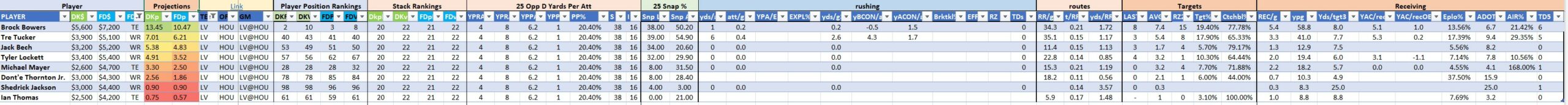 We will maintain the list of rules and limits throughout the season, with occasional tweaks. Each week sees another fresh crop of value plays as situations change and injuries create opportunities around the league. These changing roles and emergent value plays are accounted for in creating these groups from week to week. After a large pool of lineups is created utilizing these groups, it is still critical to filter them for factors including ceiling projections and leverage potential. These groups should help ensure that a highly correlated premium set of options that rotates through various combinations is utilized to create the full lineup pool.