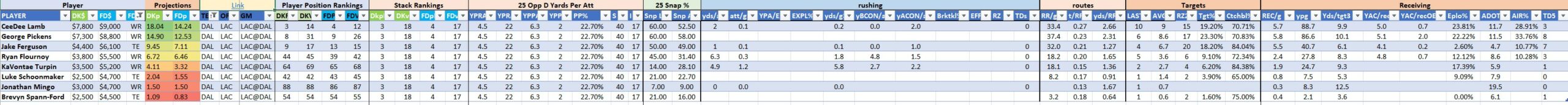 Opposing Group: CeeDee Lamb, George Pickens, Javonte Williams, Jake Ferguson, Ryan Flournoy, KaVontae Turpin, Malik Davis (on/off), Luke Schoonmaker (on/off; large field)