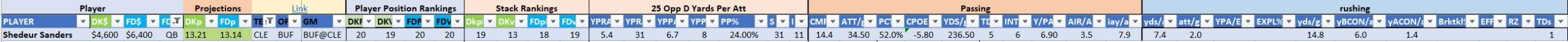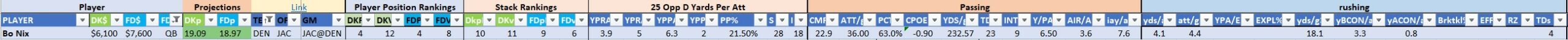 The goal is to create a large pool of well-built lineups that can be utilized in any large-field GPP contest. Our approach is to build far more lineups than needed and utilize a sorting table or sim process to filter to the best set of entries. The lineups created in these crunches should provide a broad distribution that includes some of the lower-owned high-upside skill players from each stack. Applying boosts is critical in pushing and pulling ownership to individual players within their team’s stacked lineups if they appear too much or too little.