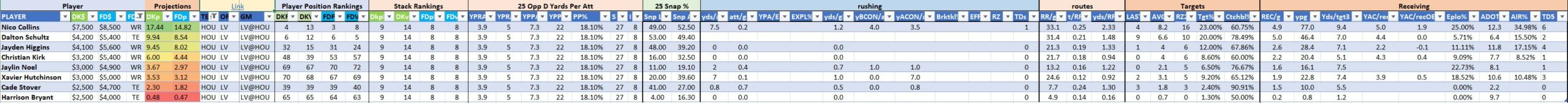 Team Group: Nico Collins, Dalton Schultz, Woody Marks (on/off), Jayden Higgins, Christian Kirk, Jaylin Noel, Nick Chubb (on/off), Xavier Hutchinson