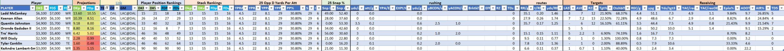Team Group: Ladd McConkey, Omarion Hampton, Keenan Allen, Quentin Johnston, Oronde Gadsden II, Tre’ Harris, Will Dissly (on/off; large field), Kimani Vidal (on/off)